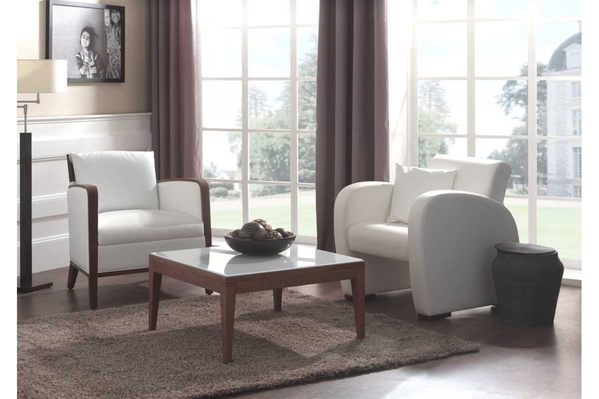 La colección DOMUS ofrece una versatilidad excepcional para configurar espacios completos: combinado con sofás de 2 o 3 plazas, permite crear salones totalmente cohesionados. Los reposabrazos están disponibles en versión redondeada, de madera o sintéticos con incisiones para bandeja de cena extraíble —almacenable discretamente detrás del sillón—, adaptándose a las necesidades funcionales de cada usuario sin comprometer la estética del conjunto.