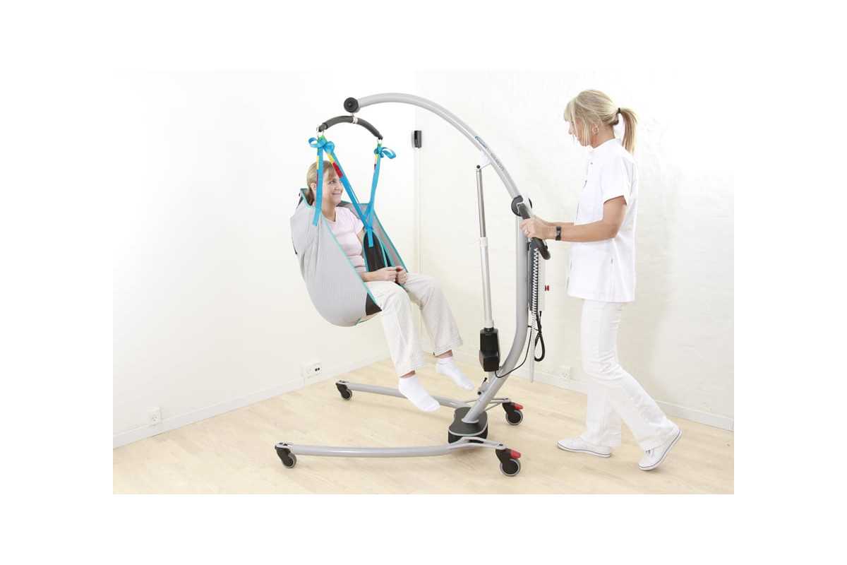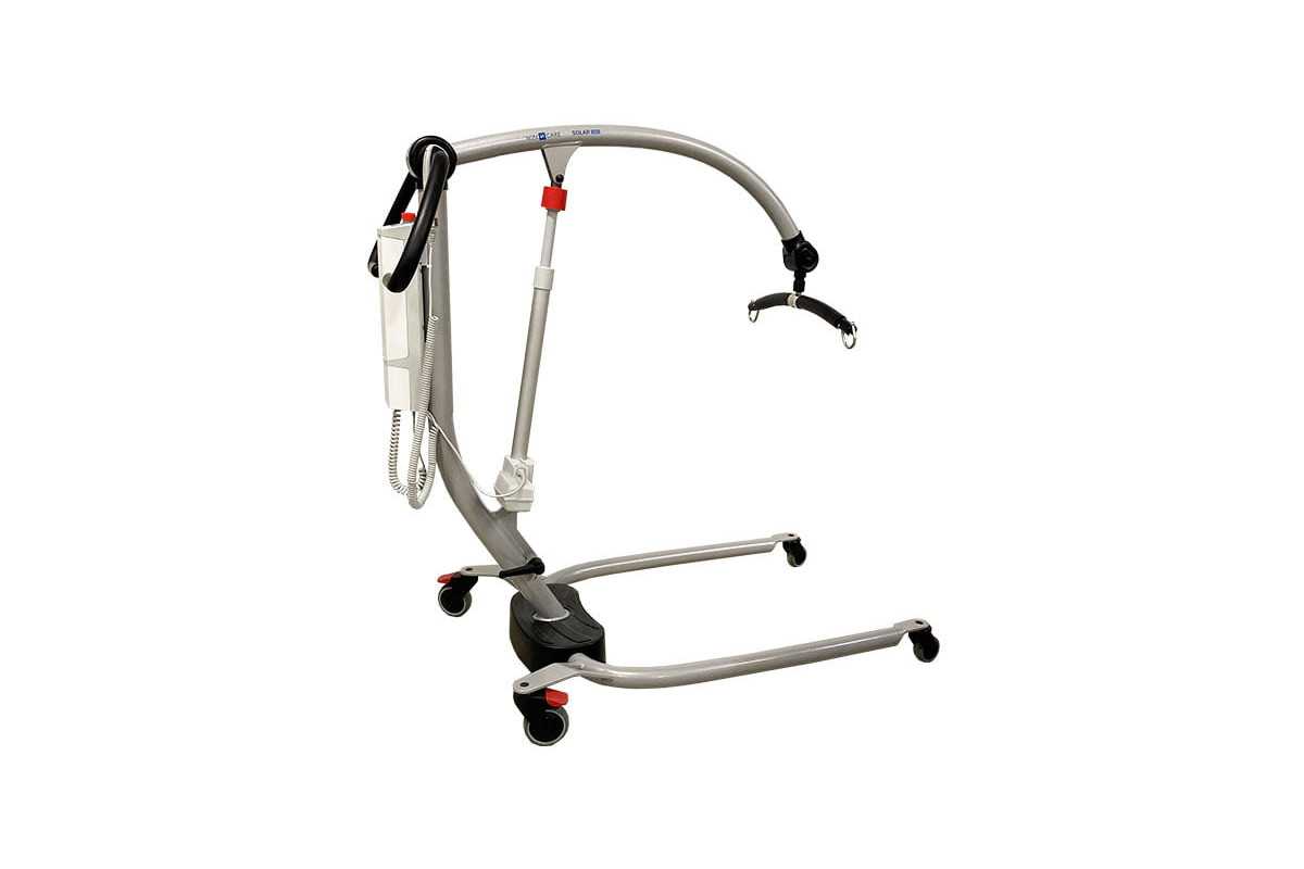 La grúa de elevación y traslado Solar 185 tiene un diseño único y elegante con tubos redondeados. Su mango ancho y apertura eléctrica de las patas facilita su manejo. Cuenta con un sistema patentado en la percha de sujeción de arneses simple y seguro.