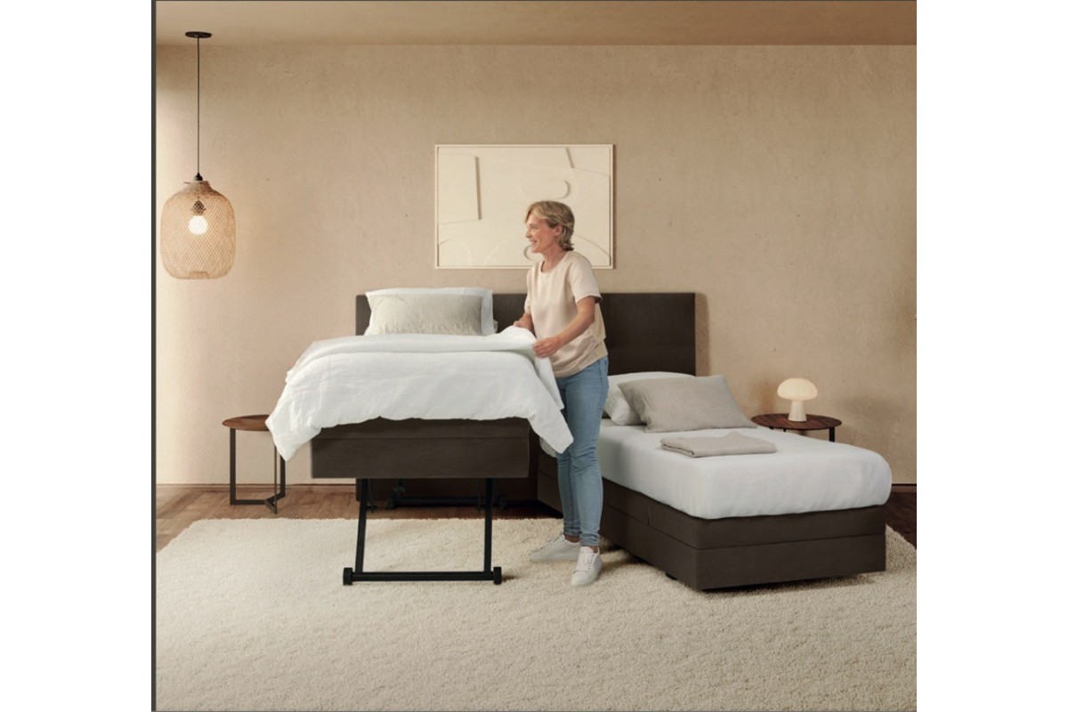 Su altura regulable de 32 a 80 cm, junto a un somier de 5 planos, permite encontrar siempre la postura más cómoda para dormir, leer o relajarse. Incorpora posiciones programables como antirreflujo o “piernas arriba” para mejorar la circulación, y se maneja fácilmente con un control inalámbrico. Todo ello con una estética tipo boxspring personalizable en colores y tejidos, ideal para hogares o residencias que buscan bienestar, estilo y funcionalidad.