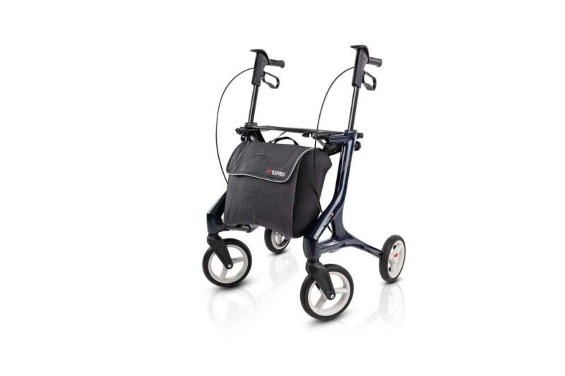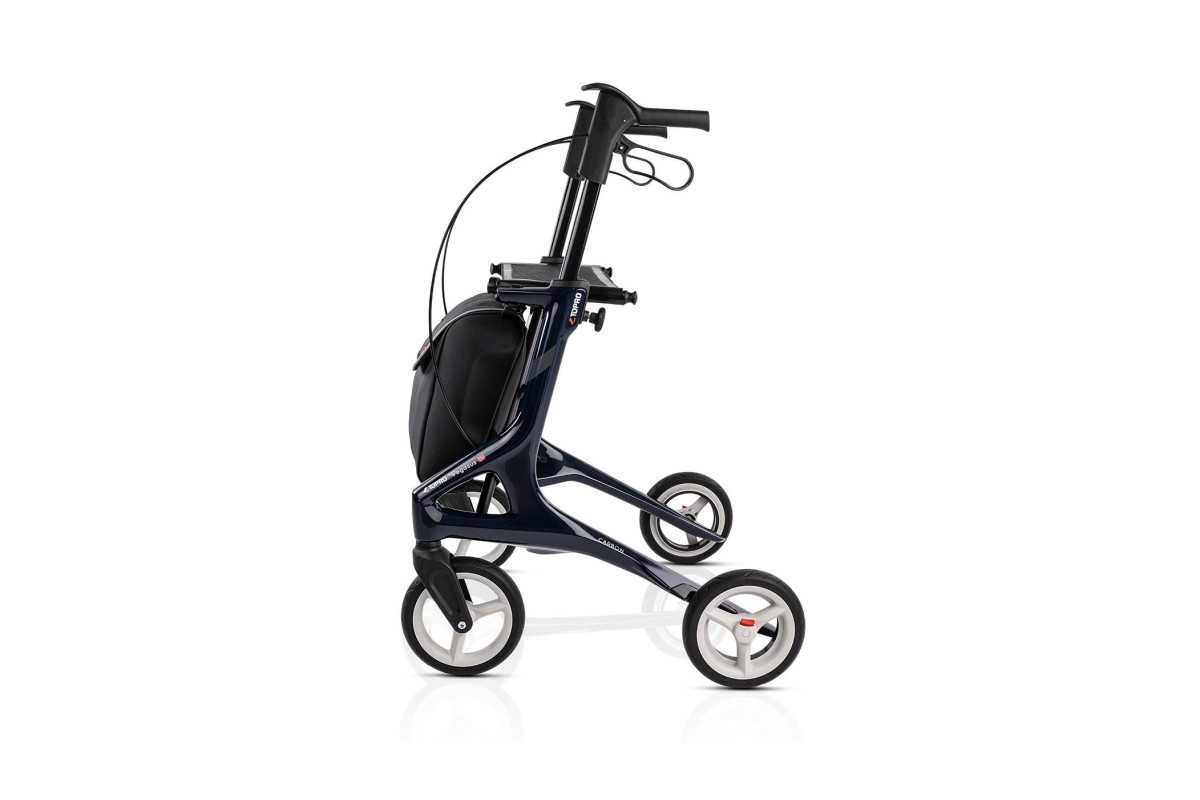 Rollator sofisticado, moderno y ligero, está pensado para alcanzar un gran confort gracias a sus neumáticos con amortiguación y rodamientos de bolas, su gran bolsa de la compra o su ajuste sencillo de las asas, lo que junto a los reflectores en el cuadro, que proporcionan una gran seguridad en la oscuridad, le confieren un valor muy completo.