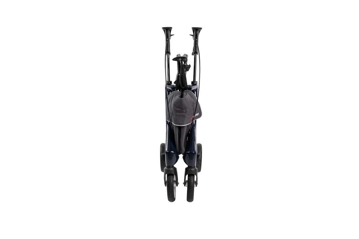 Andador Pegasus con 4 ruedas, ruedas traseras extraíbles, frenos tipo maneta (ruedas traseras), asiento y bolsa incluidos, material en carbono, regulable en altura.