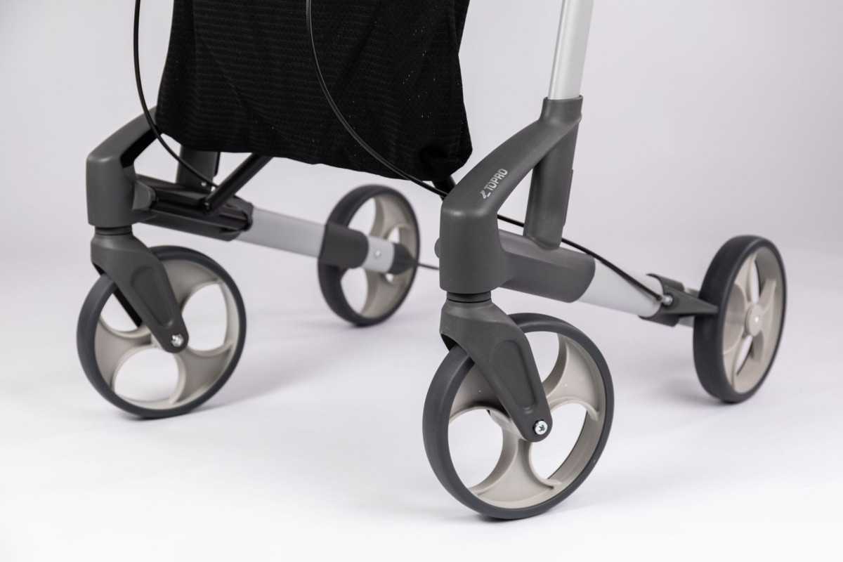Rollator básico de TOPRO de diseño vanguardista y acabados de gran calidad con alto nivel de prestaciones, que permiten al usuario mantener una vida diaria activa y segura en sus desplazamientos. Funcional y confortable en la conducción, con los rodamientos de bolas en horquillas y ruedas y los frenos en ambos mangos, para un estacionamiento seguro.