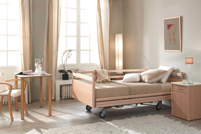 Cama hidráulica de cuidados, que combina una tecnología probada con un aspecto hogareño.
